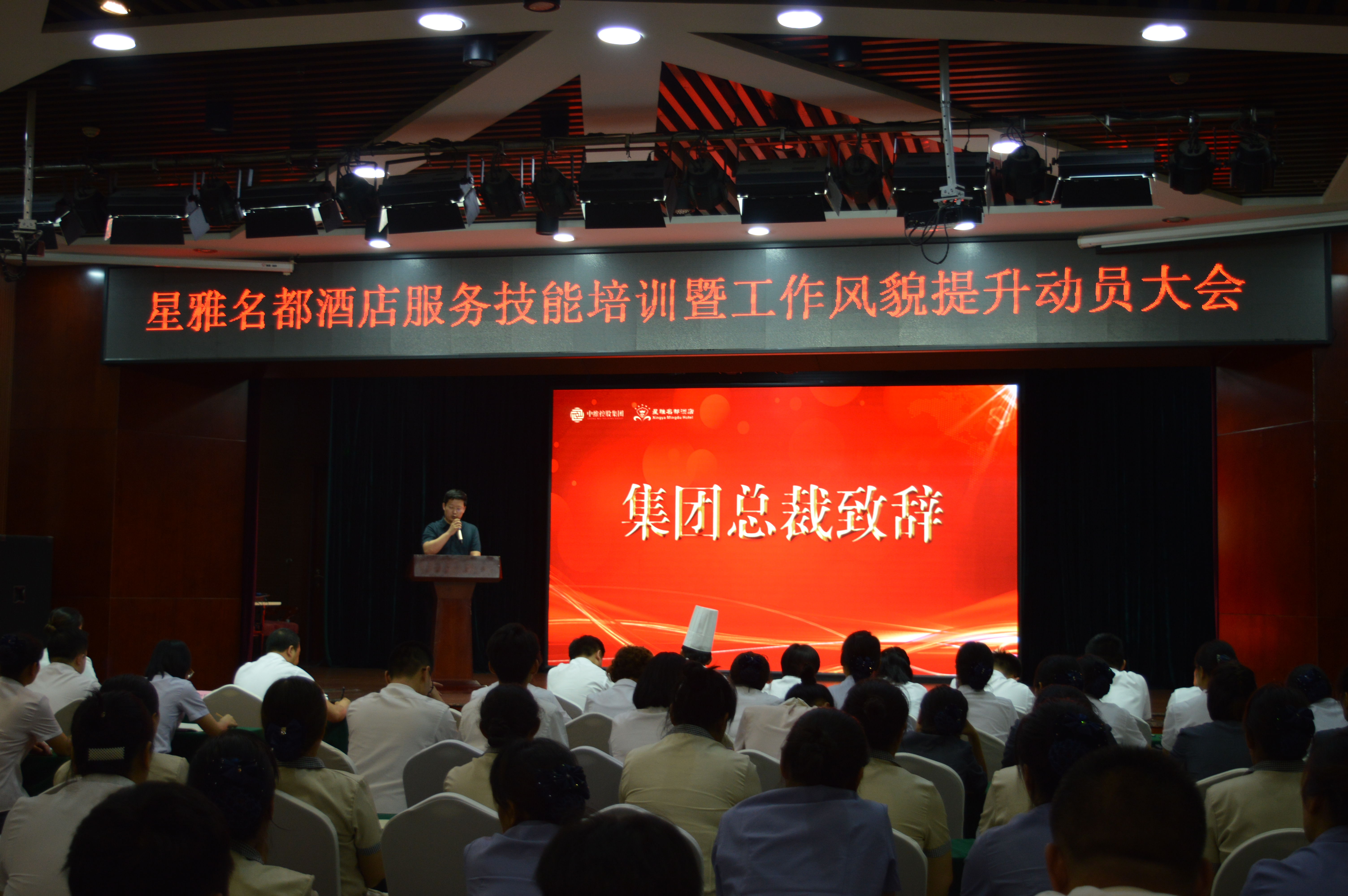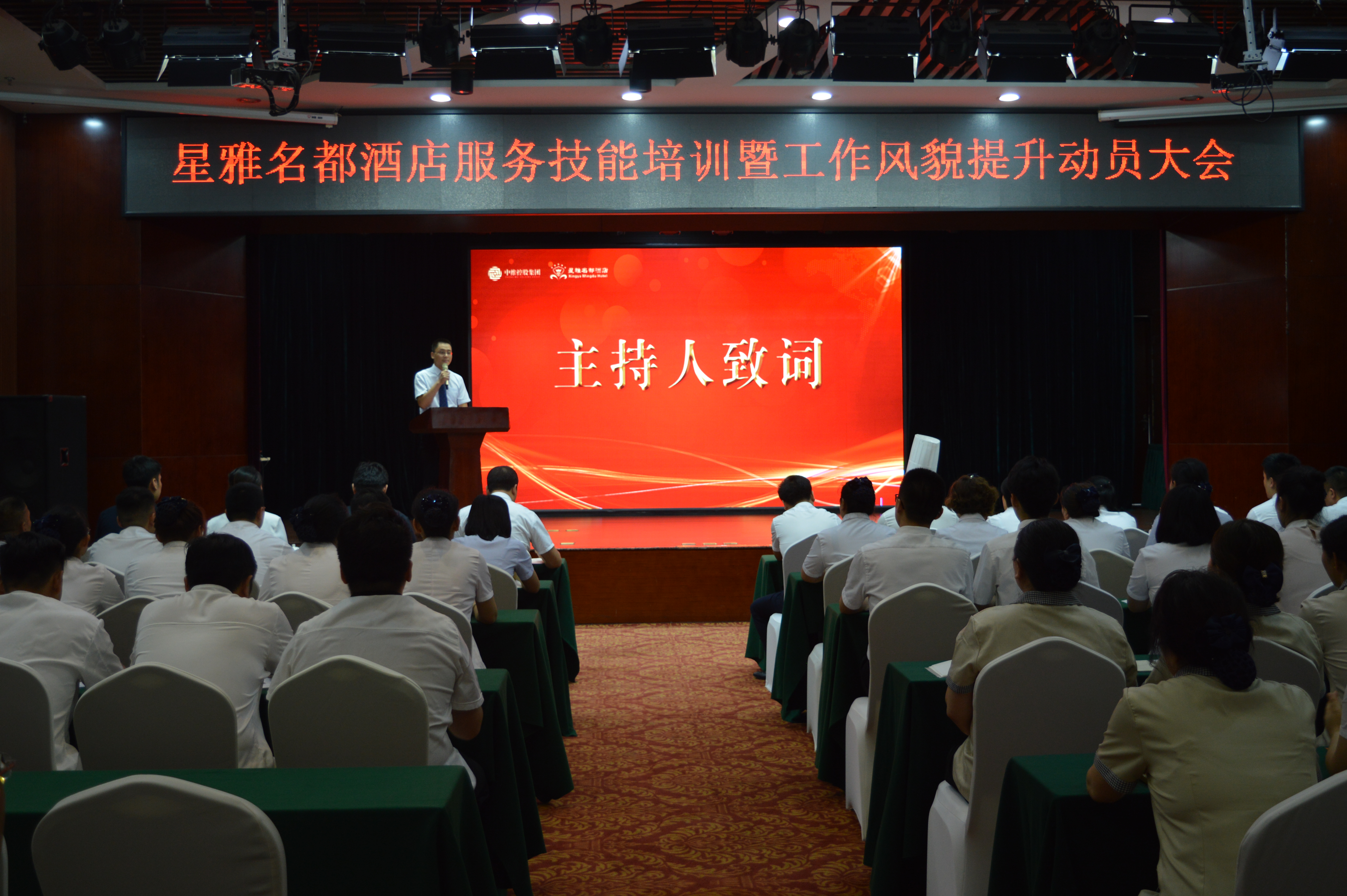 為積極響應集團公司“解放思想、改革創(chuàng)新”總體動員令,持續(xù)提升酒店服務品質,強化員工紀律作風,2020年8月3日下午,由集團綜合部組織,星雅酒店員工參與,召開了“服務技能培訓暨工作風貌提升動員大會”,集團總裁郭雅磊先生出席本次大會并做重要講話。